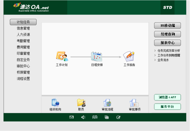 《速達OA.Net》是速達公司以二十年開發經驗積淀、融合數萬家客戶的需求理解與管理經驗,精心打造的一款OA協同創新系統,產品創造性的將C\S&B\S&APP結構融為一體,秉承速達軟件一貫的易用性和實用性,以審批流程為核心,審批人條件指派方式實現了審批流程兼容的最大化,實時到位的提醒致力提高企業工作效率,系統預設通用功能模塊,并支持自定義業務和自定義報表,滿足企業個性化功能拓展的需要,并可通過部門進行數據權限分配,全面提升企業管理效率和管理水平。